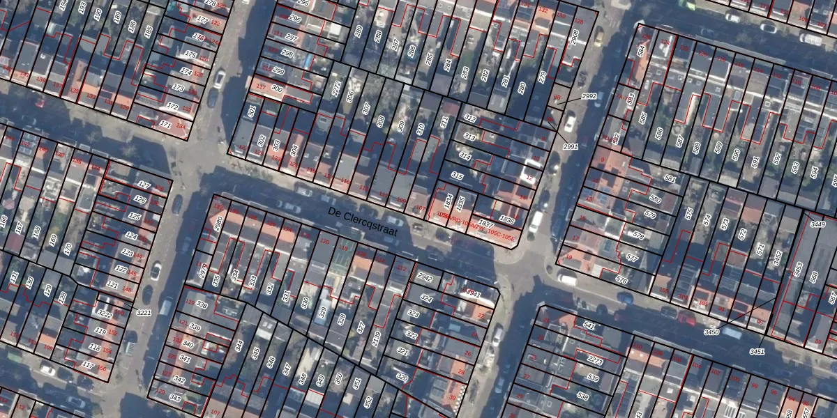 De Clercqstraat 107 is gelegen op kadastraal perceel HLM01H311. Deze kadastrale aanduiding is uniek en wordt gebruikt door het Kadaster om eigendomsrechten en andere zakelijke rechten vast te leggen. Het perceel maakt onderdeel uit van de kadastrale gemeente Haarlem.