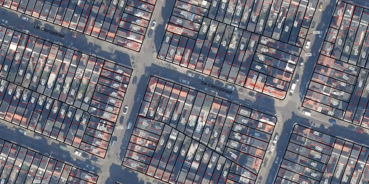 Het perceel waarop De Clercqstraat 124 staat heeft een oppervlakte van 95 m². Dit is een klein perceel. De perceeloppervlakte wordt geregistreerd door het Kadaster. Gedetailleerde informatie over de maten van dit perceel kunt u vinden in het rapport Kadastrale kaart met maatvoering van De Clercqstraat 124.