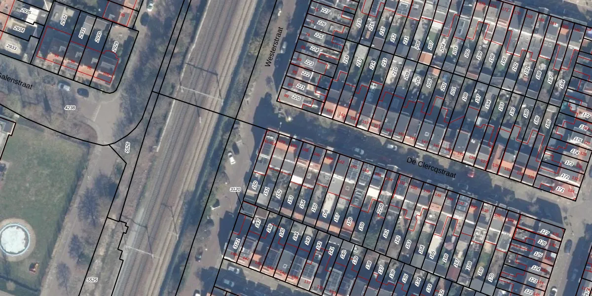 Gebruik de zoekbalk of klik op een perceel voor informatie over de adressen binnen dit perceel.