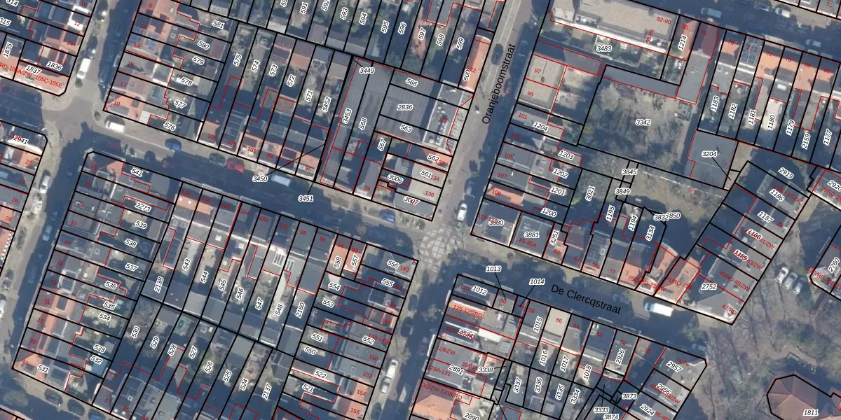 Het perceel waarop De Clercqstraat 87 staat heeft een oppervlakte van 66 m². Dit is een klein perceel. De perceeloppervlakte wordt geregistreerd door het Kadaster. Gedetailleerde informatie over de maten van dit perceel kunt u vinden in het rapport Kadastrale kaart met maatvoering van De Clercqstraat 87.