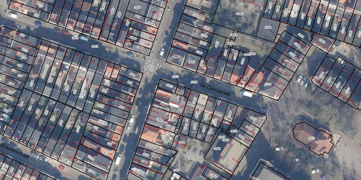 Het perceel waarop De Clercqstraat 90 staat heeft een oppervlakte van 24 m². Dit is een klein perceel. De perceeloppervlakte wordt geregistreerd door het Kadaster. Gedetailleerde informatie over de maten van dit perceel kunt u vinden in het rapport Kadastrale kaart met maatvoering van De Clercqstraat 90.