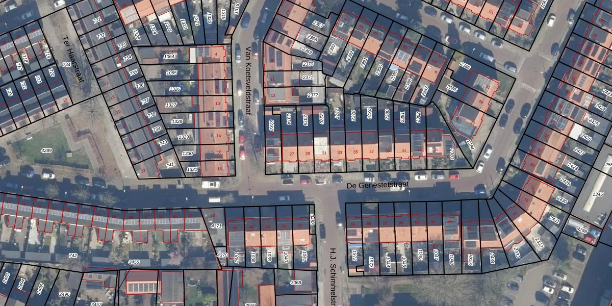 De Genestetstraat 29 is gelegen op kadastraal perceel HLM02P2375. Deze kadastrale aanduiding is uniek en wordt gebruikt door het Kadaster om eigendomsrechten en andere zakelijke rechten vast te leggen. Het perceel maakt onderdeel uit van de kadastrale gemeente Haarlem.