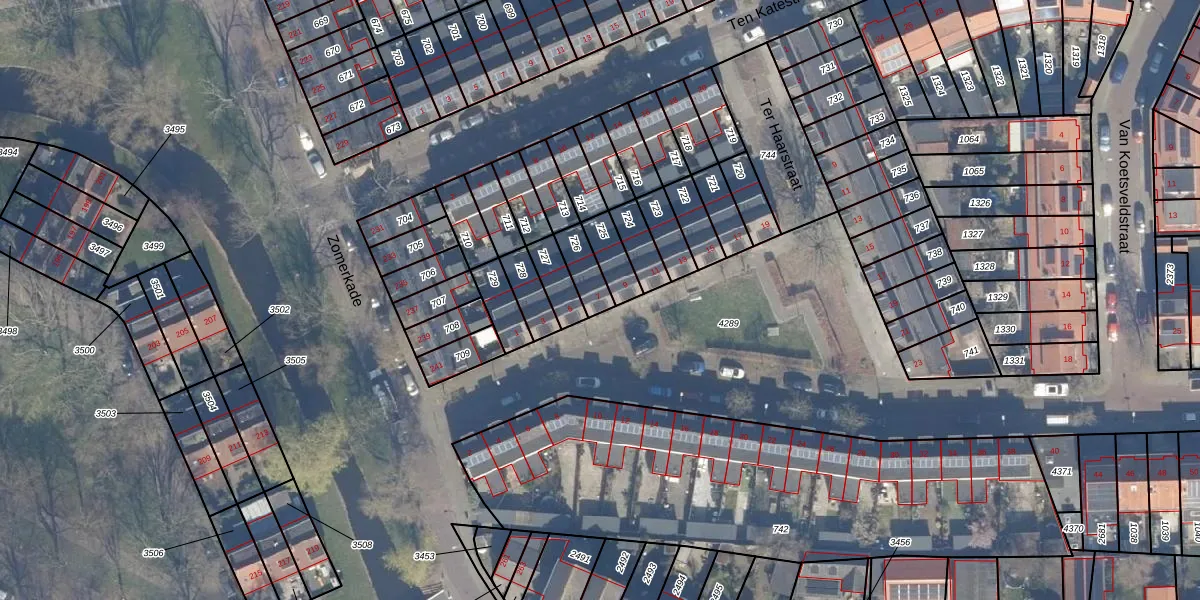 Gebruik de zoekbalk of klik op een perceel voor informatie over de adressen binnen dit perceel.