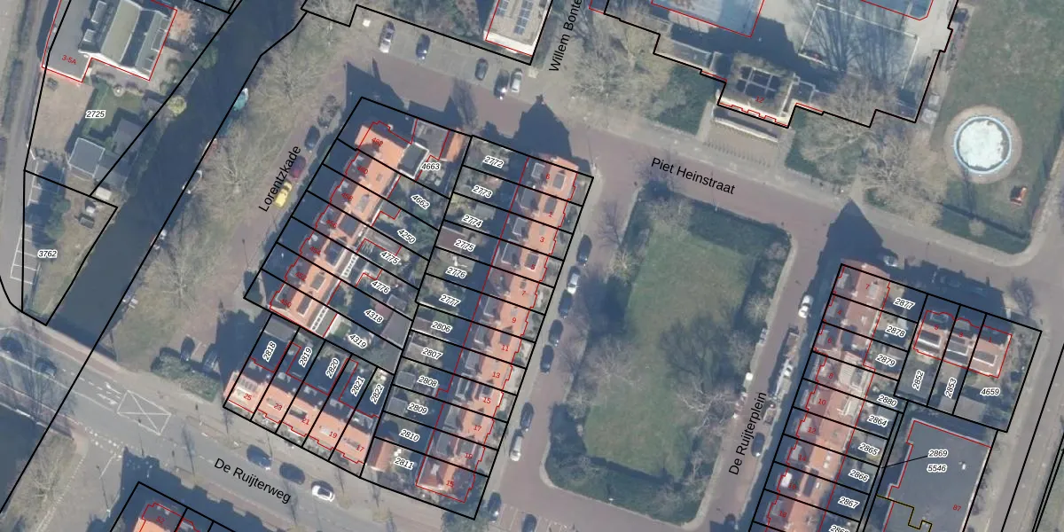 Gebruik de zoekbalk of klik op een perceel voor informatie over de adressen binnen dit perceel.