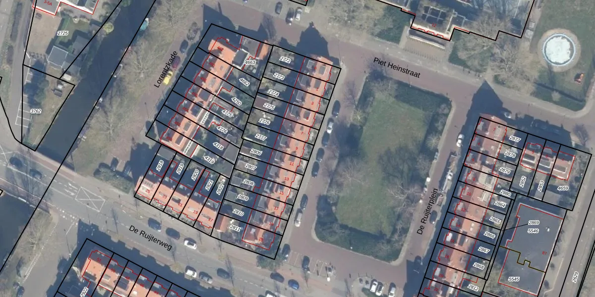 Gebruik de zoekbalk of klik op een perceel voor informatie over de adressen binnen dit perceel.