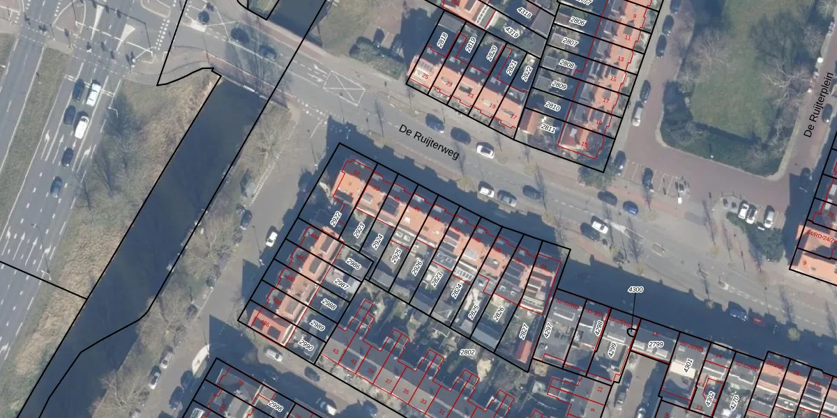 Gebruik de zoekbalk of klik op een perceel voor informatie over de adressen binnen dit perceel.
