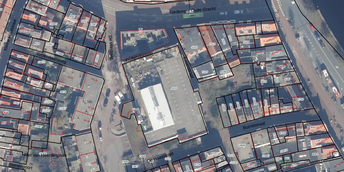 Het perceel waarop het adres ligt is HLM01-D-9333. De afkorting 'HLM01' staat voor kadastrale gemeente Haarlem. De gemiddelde perceeloppervlakte in de kadastrale gemeente Haarlem is 328,17 m². Dit perceel is met zijn 1941 m² dus groter dan gemiddeld. De grootste perceeloppervlakte in de kadastrale gemeente is 13,9 ha. De kleinste oppervlakte bedraagt 0 m². Op het perceel zijn 2 adressen aanwezig. In de Basisregistratie Kadaster (BRK) werden de grenzen van het perceel geregistreerd op 03-12-1997.