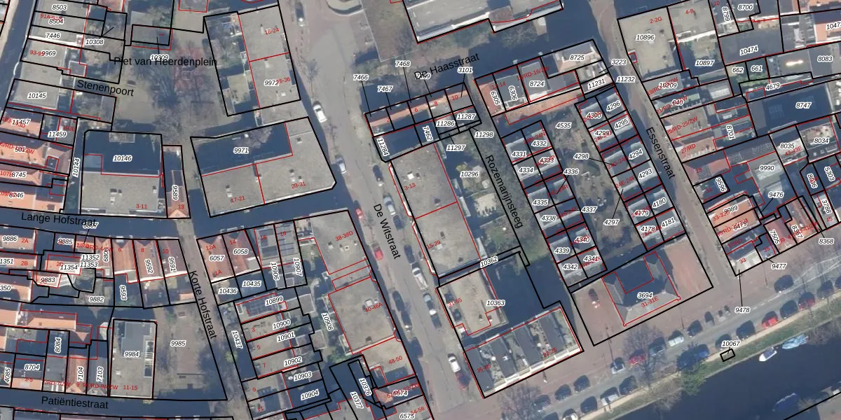 De Witstraat 13 is gelegen op kadastraal perceel HLM01D10296. Deze kadastrale aanduiding is uniek en wordt gebruikt door het Kadaster om eigendomsrechten en andere zakelijke rechten vast te leggen. Het perceel maakt onderdeel uit van de kadastrale gemeente Haarlem.