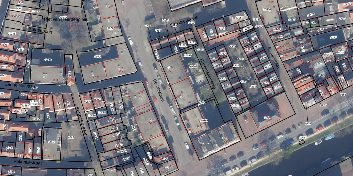De Witstraat 17 is gelegen op kadastraal perceel HLM01D10296. Deze kadastrale aanduiding is uniek en wordt gebruikt door het Kadaster om eigendomsrechten en andere zakelijke rechten vast te leggen. Het perceel maakt onderdeel uit van de kadastrale gemeente Haarlem.
