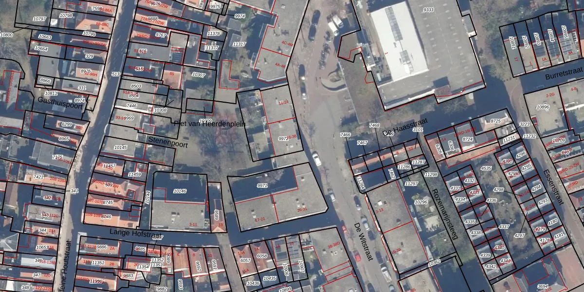 Het perceel waarop het adres ligt is HLM01-D-9972. De afkorting 'HLM01' staat voor kadastrale gemeente Haarlem. Het perceel is met 419 m² relatief groot. Het gemiddelde ligt in de kadastrale gemeente Haarlem op 328,17 m². De grootste perceeloppervlakte in de kadastrale gemeente is 13,9 ha. De kleinste oppervlakte bedraagt 0 m². Er zijn 11 adressen aanwezig op het perceel. De laatste wijziging in het de Basisregistratie Kadaster (BRK) was op 13-09-2001.