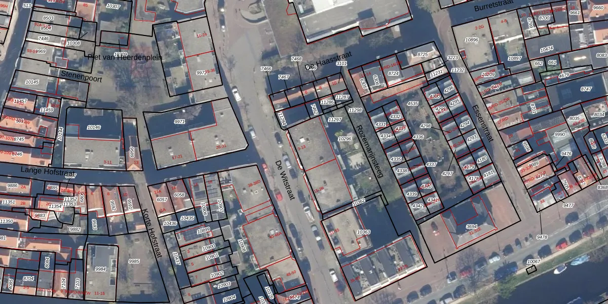 Het perceel waarop De Witstraat 9 staat heeft een oppervlakte van 648 m². Dit is een groot perceel. De perceeloppervlakte wordt geregistreerd door het Kadaster. Gedetailleerde informatie over de maten van dit perceel kunt u vinden in het rapport Kadastrale kaart met maatvoering van De Witstraat 9.