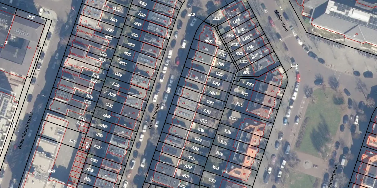 Het perceel waarop Deckerstraat 21 staat heeft een oppervlakte van 144 m². Dit is een middelgroot perceel. De perceeloppervlakte wordt geregistreerd door het Kadaster. Gedetailleerde informatie over de maten van dit perceel kunt u vinden in het rapport Kadastrale kaart met maatvoering van Deckerstraat 21.