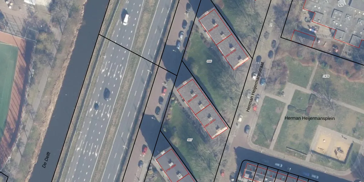 Het perceel waarop Delftlaan 293-D staat heeft een oppervlakte van 1472 m². Dit is een zeer groot perceel. De perceeloppervlakte wordt geregistreerd door het Kadaster. Gedetailleerde informatie over de maten van dit perceel kunt u vinden in het rapport Kadastrale kaart met maatvoering van Delftlaan 293-D.