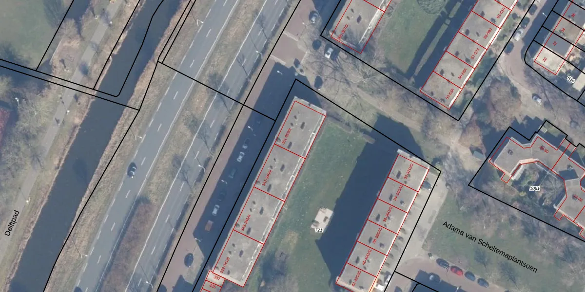 Het perceel waarop Delftlaan 351-I staat heeft een oppervlakte van 5910 m². Dit is een zeer groot perceel. De perceeloppervlakte wordt geregistreerd door het Kadaster. Gedetailleerde informatie over de maten van dit perceel kunt u vinden in het rapport Kadastrale kaart met maatvoering van Delftlaan 351-I.