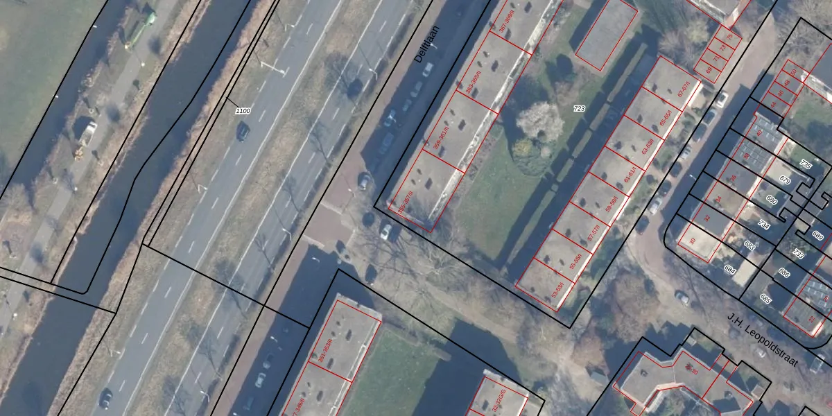 Het perceel waarop Delftlaan 355-I staat heeft een oppervlakte van 5505 m². Dit is een zeer groot perceel. De perceeloppervlakte wordt geregistreerd door het Kadaster. Gedetailleerde informatie over de maten van dit perceel kunt u vinden in het rapport Kadastrale kaart met maatvoering van Delftlaan 355-I.