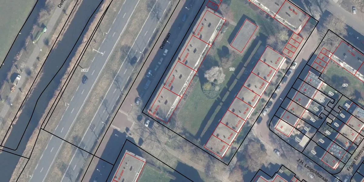 Het perceel waarop Delftlaan 359-II staat heeft een oppervlakte van 5505 m². Dit is een zeer groot perceel. De perceeloppervlakte wordt geregistreerd door het Kadaster. Gedetailleerde informatie over de maten van dit perceel kunt u vinden in het rapport Kadastrale kaart met maatvoering van Delftlaan 359-II.