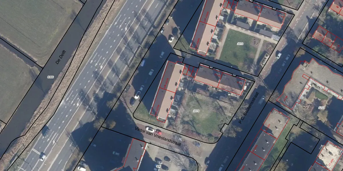 Het perceel waarop Delftlaan 429-II staat heeft een oppervlakte van 2185 m². Dit is een zeer groot perceel. De perceeloppervlakte wordt geregistreerd door het Kadaster. Gedetailleerde informatie over de maten van dit perceel kunt u vinden in het rapport Kadastrale kaart met maatvoering van Delftlaan 429-II.