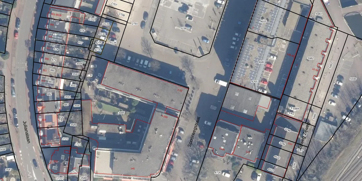 Het perceel waarop het adres ligt is HLM02-T-3485. De afkorting 'HLM02' staat voor kadastrale gemeente Haarlem. Het perceel is met 3090 m² relatief groot. Het gemiddelde ligt in de kadastrale gemeente Haarlem op 1125,45 m². Het kleinste perceel in de kadastrale gemeente is 0 m² groot. De grootste perceeloppervlakte is 46,4 ha. Er zijn 55 adressen aanwezig op het perceel. De laatste wijziging in het de Basisregistratie Kadaster (BRK) was op 13-11-2001.