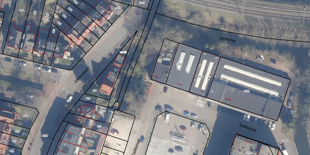Het perceel waarop Delftstraat 40 staat heeft een oppervlakte van 280 m². Dit is een middelgroot perceel. De perceeloppervlakte wordt geregistreerd door het Kadaster. Gedetailleerde informatie over de maten van dit perceel kunt u vinden in het rapport Kadastrale kaart met maatvoering van Delftstraat 40.