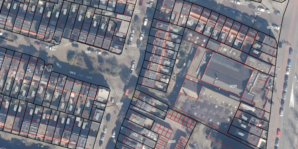Gebruik de zoekbalk of klik op een perceel voor informatie over de adressen binnen dit perceel.