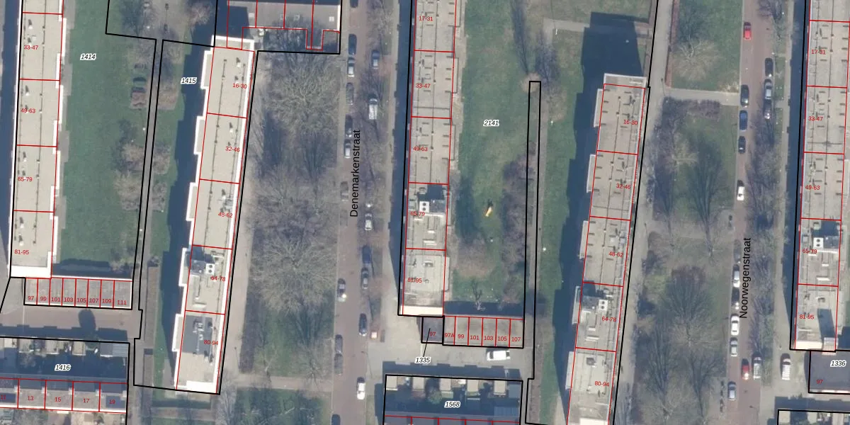 Het perceel waarop Denemarkenstraat 71 staat heeft een oppervlakte van 6590 m². Dit is een zeer groot perceel. De perceeloppervlakte wordt geregistreerd door het Kadaster. Gedetailleerde informatie over de maten van dit perceel kunt u vinden in het rapport Kadastrale kaart met maatvoering van Denemarkenstraat 71.