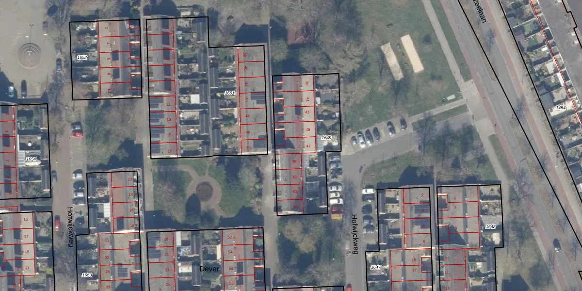 Dever 47 is gelegen op kadastraal perceel HLM02Y1649. Deze kadastrale aanduiding is uniek en wordt gebruikt door het Kadaster om eigendomsrechten en andere zakelijke rechten vast te leggen. Het perceel maakt onderdeel uit van de kadastrale gemeente Haarlem.