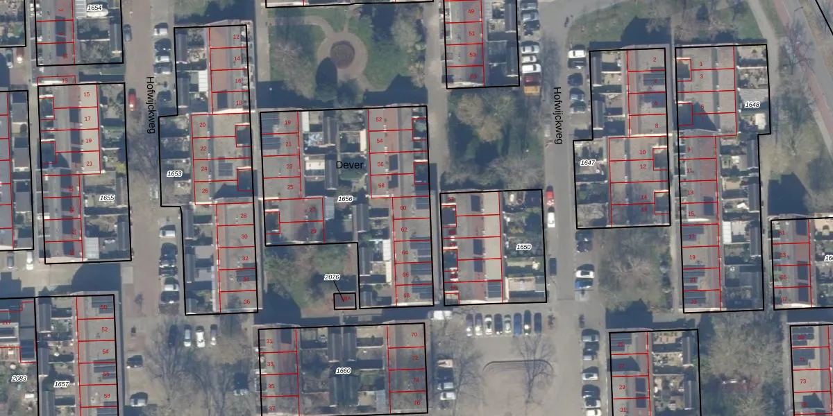 Het perceel waarop Dever 60 staat heeft een oppervlakte van 1564 m². Dit is een zeer groot perceel. De perceeloppervlakte wordt geregistreerd door het Kadaster. Gedetailleerde informatie over de maten van dit perceel kunt u vinden in het rapport Kadastrale kaart met maatvoering van Dever 60.