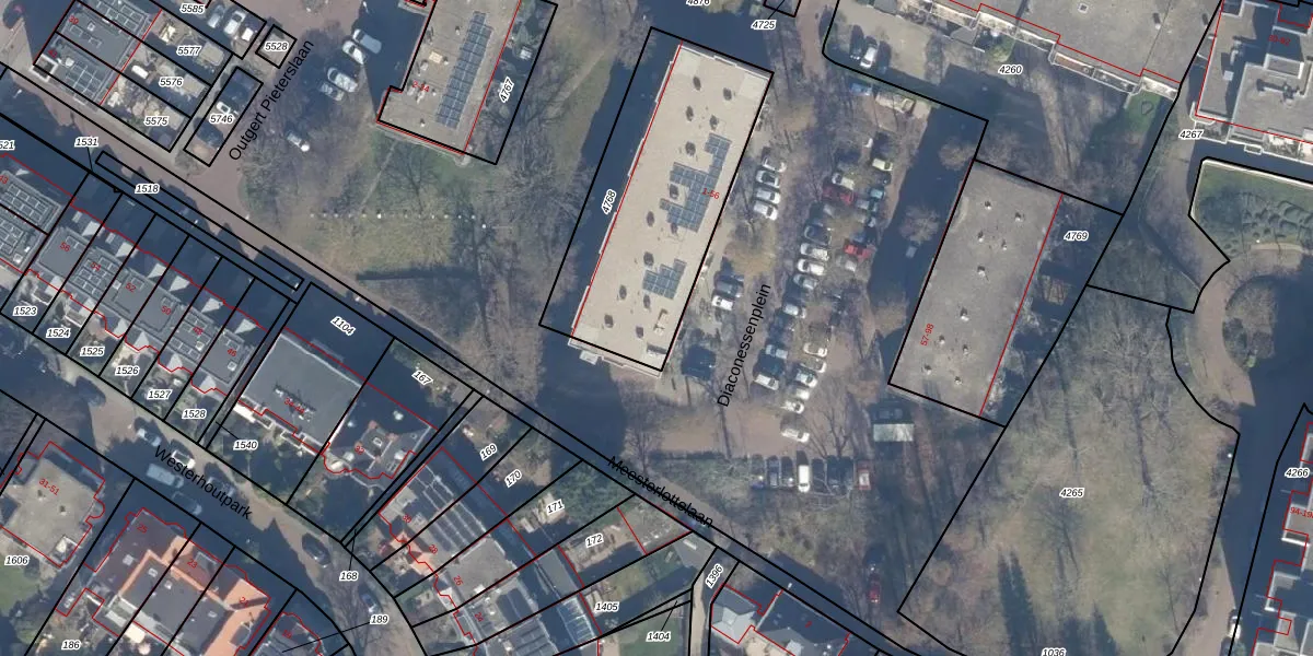 Het perceel waarop Diaconessenplein 12 staat heeft een oppervlakte van 958 m². Dit is een groot perceel. De perceeloppervlakte wordt geregistreerd door het Kadaster. Gedetailleerde informatie over de maten van dit perceel kunt u vinden in het rapport Kadastrale kaart met maatvoering van Diaconessenplein 12.