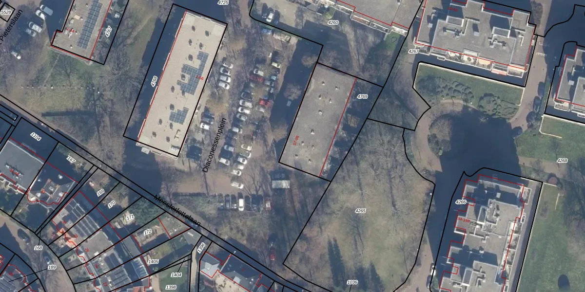 Het perceel waarop Diaconessenplein 96 staat heeft een oppervlakte van 753 m². Dit is een groot perceel. De perceeloppervlakte wordt geregistreerd door het Kadaster. Gedetailleerde informatie over de maten van dit perceel kunt u vinden in het rapport Kadastrale kaart met maatvoering van Diaconessenplein 96.