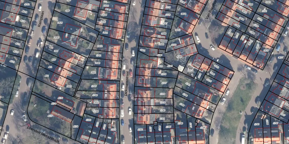 Het perceel waarop Dickmansstraat 47 staat heeft een oppervlakte van 162 m². Dit is een middelgroot perceel. De perceeloppervlakte wordt geregistreerd door het Kadaster. Gedetailleerde informatie over de maten van dit perceel kunt u vinden in het rapport Kadastrale kaart met maatvoering van Dickmansstraat 47.
