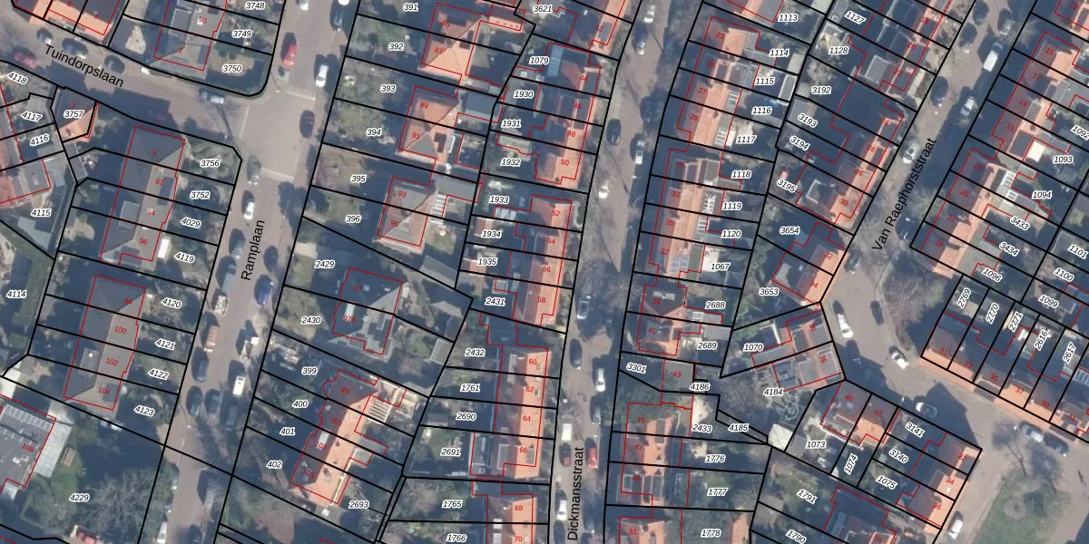 Gebruik de zoekbalk of klik op een perceel voor informatie over de adressen binnen dit perceel.
