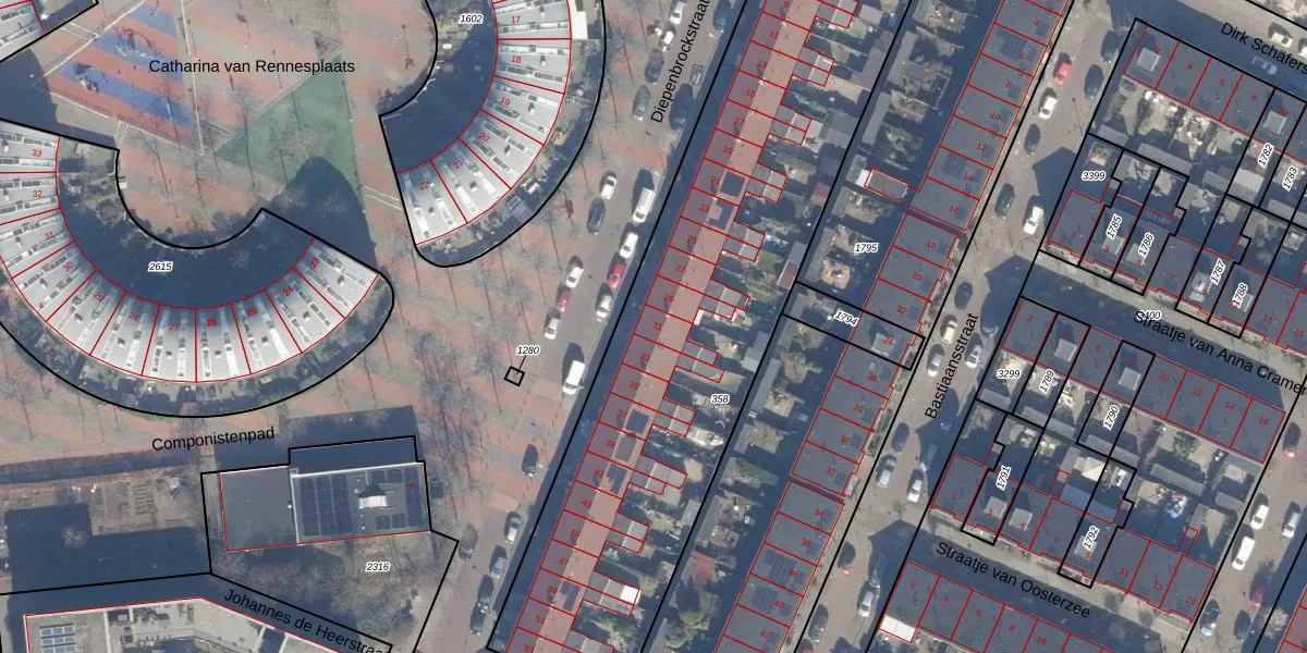 Het perceel waarop Diepenbrockstraat 31 staat heeft een oppervlakte van 2932 m². Dit is een zeer groot perceel. De perceeloppervlakte wordt geregistreerd door het Kadaster. Gedetailleerde informatie over de maten van dit perceel kunt u vinden in het rapport Kadastrale kaart met maatvoering van Diepenbrockstraat 31.