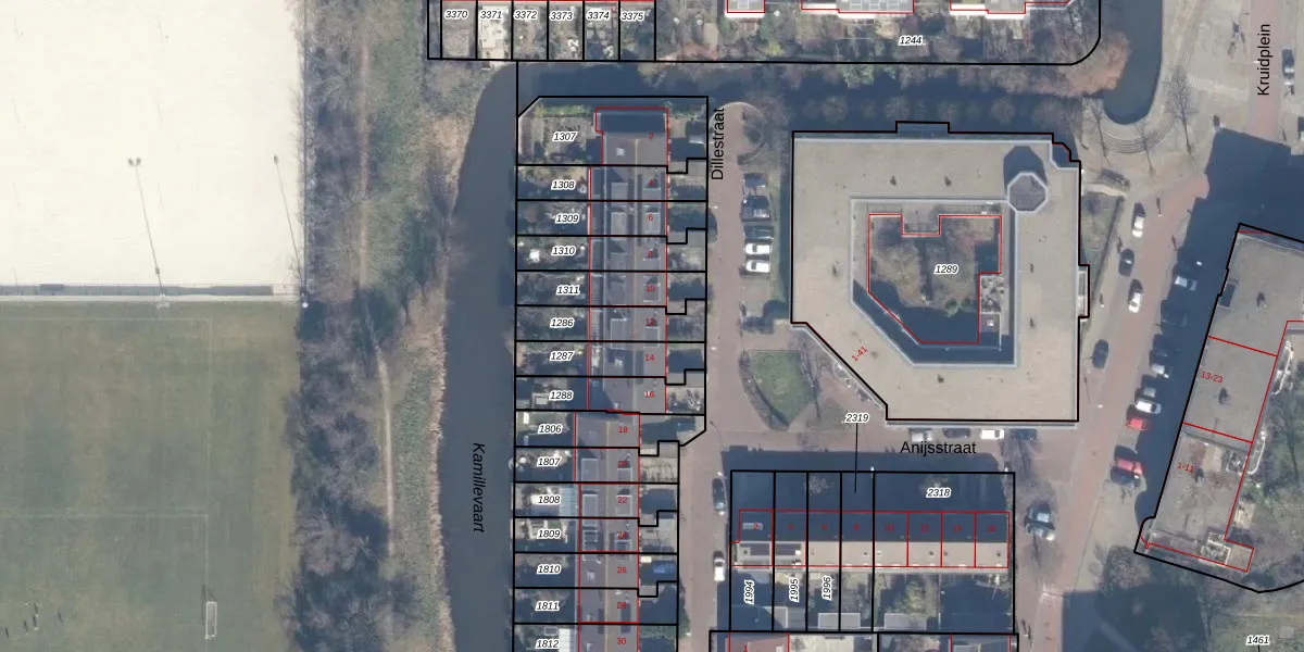 Het perceel waarop Dillestraat 12 staat heeft een oppervlakte van 158 m². Dit is een middelgroot perceel. De perceeloppervlakte wordt geregistreerd door het Kadaster. Gedetailleerde informatie over de maten van dit perceel kunt u vinden in het rapport Kadastrale kaart met maatvoering van Dillestraat 12.