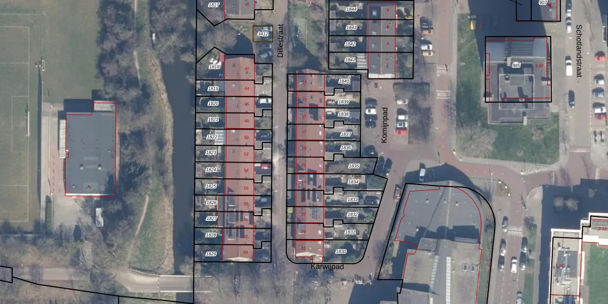 Het perceel waarop Dillestraat 19 staat heeft een oppervlakte van 129 m². Dit is een middelgroot perceel. De perceeloppervlakte wordt geregistreerd door het Kadaster. Gedetailleerde informatie over de maten van dit perceel kunt u vinden in het rapport Kadastrale kaart met maatvoering van Dillestraat 19.