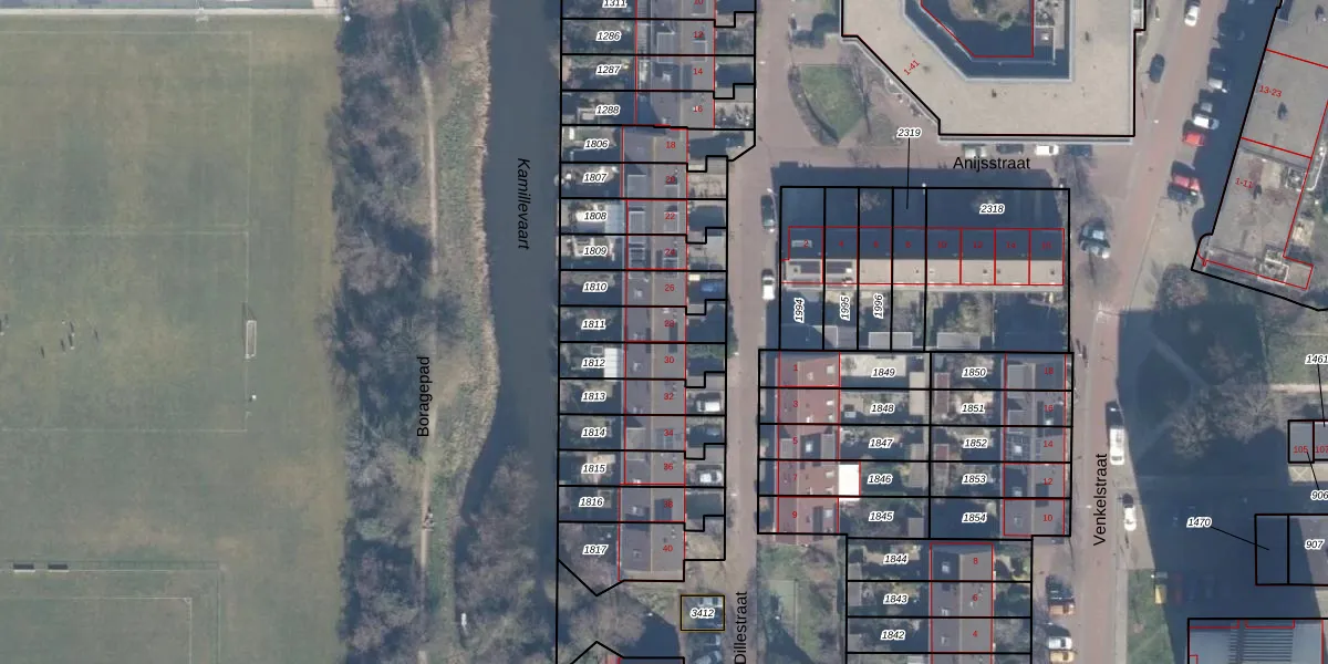 Gebruik de zoekbalk of klik op een perceel voor informatie over de adressen binnen dit perceel.