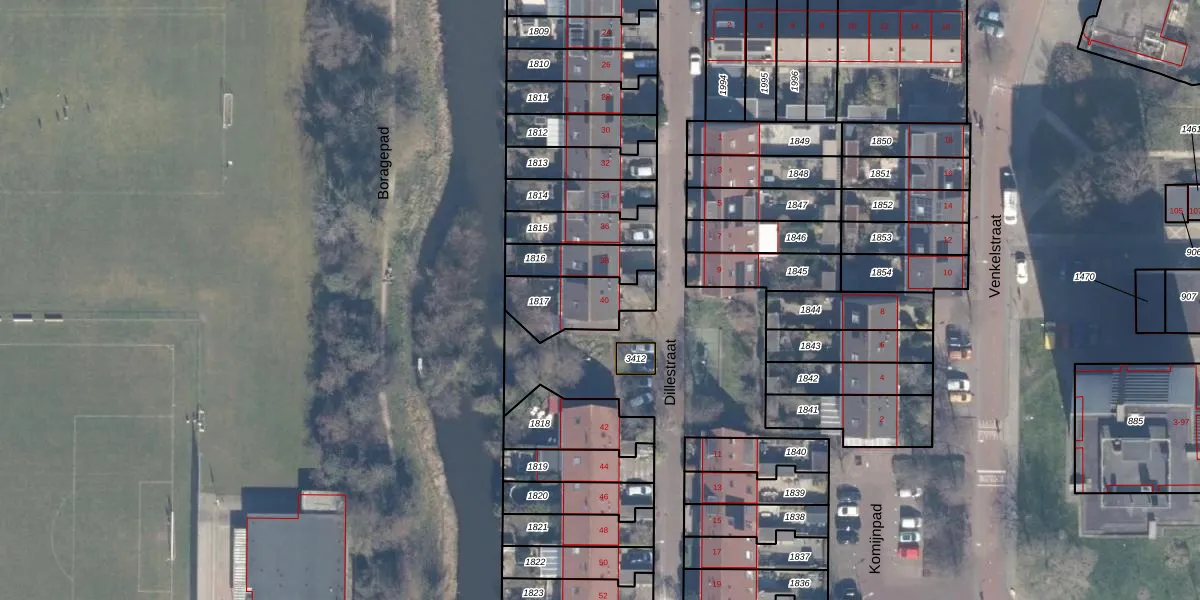Het perceel waarop Dillestraat 40 staat heeft een oppervlakte van 204 m². Dit is een middelgroot perceel. De perceeloppervlakte wordt geregistreerd door het Kadaster. Gedetailleerde informatie over de maten van dit perceel kunt u vinden in het rapport Kadastrale kaart met maatvoering van Dillestraat 40.