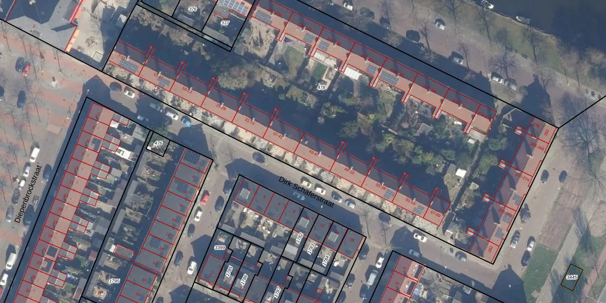 Dirk Schäferstraat 43 is gelegen op kadastraal perceel HLM02Q478. Deze kadastrale aanduiding is uniek en wordt gebruikt door het Kadaster om eigendomsrechten en andere zakelijke rechten vast te leggen. Het perceel maakt onderdeel uit van de kadastrale gemeente Haarlem.