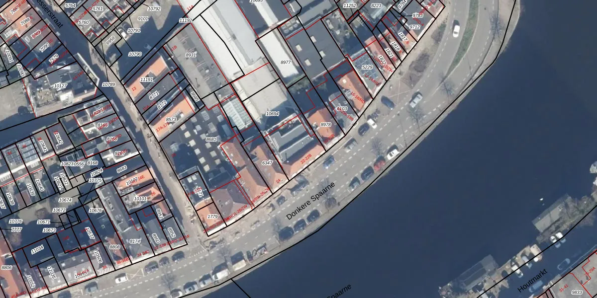 Donkere Spaarne 22-B is gelegen op kadastraal perceel HLM01D10694. Deze kadastrale aanduiding is uniek en wordt gebruikt door het Kadaster om eigendomsrechten en andere zakelijke rechten vast te leggen. Het perceel maakt onderdeel uit van de kadastrale gemeente Haarlem.