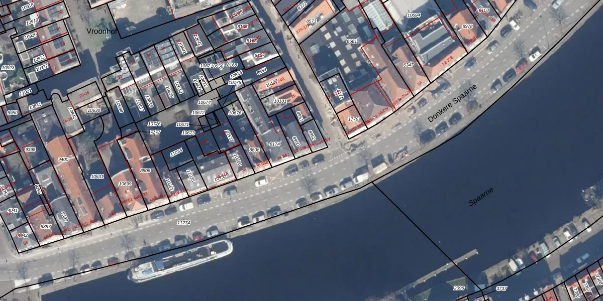 Donkere Spaarne 32 is gelegen op kadastraal perceel HLM01D8950. Deze kadastrale aanduiding is uniek en wordt gebruikt door het Kadaster om eigendomsrechten en andere zakelijke rechten vast te leggen. Het perceel maakt onderdeel uit van de kadastrale gemeente Haarlem.