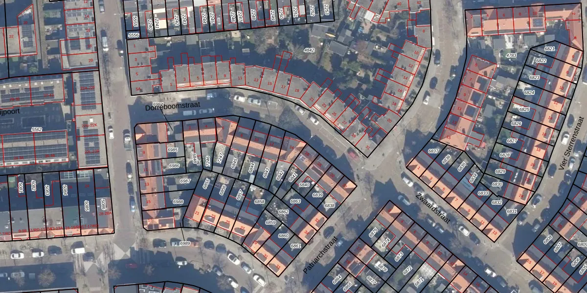 Gebruik de zoekbalk of klik op een perceel voor informatie over de adressen binnen dit perceel.