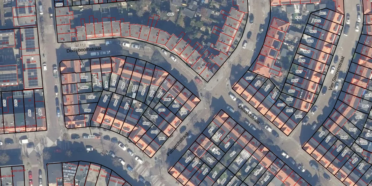 Gebruik de zoekbalk of klik op een perceel voor informatie over de adressen binnen dit perceel.