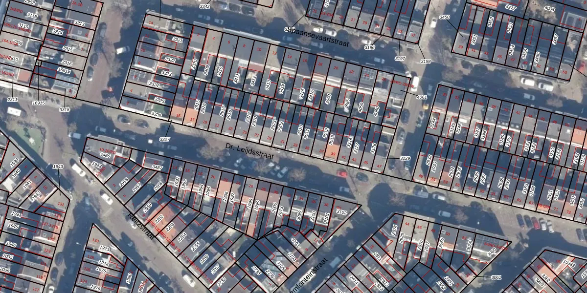 Het perceel waarop Dr. Leijdsstraat 33 staat heeft een oppervlakte van 70 m². Dit is een klein perceel. De perceeloppervlakte wordt geregistreerd door het Kadaster. Gedetailleerde informatie over de maten van dit perceel kunt u vinden in het rapport Kadastrale kaart met maatvoering van Dr. Leijdsstraat 33.