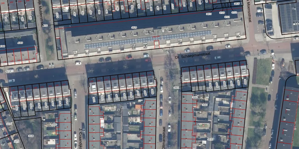 Dr. Schaepmanstraat 175 is gelegen op kadastraal perceel HLM02P3559. Deze kadastrale aanduiding is uniek en wordt gebruikt door het Kadaster om eigendomsrechten en andere zakelijke rechten vast te leggen. Het perceel maakt onderdeel uit van de kadastrale gemeente Haarlem.