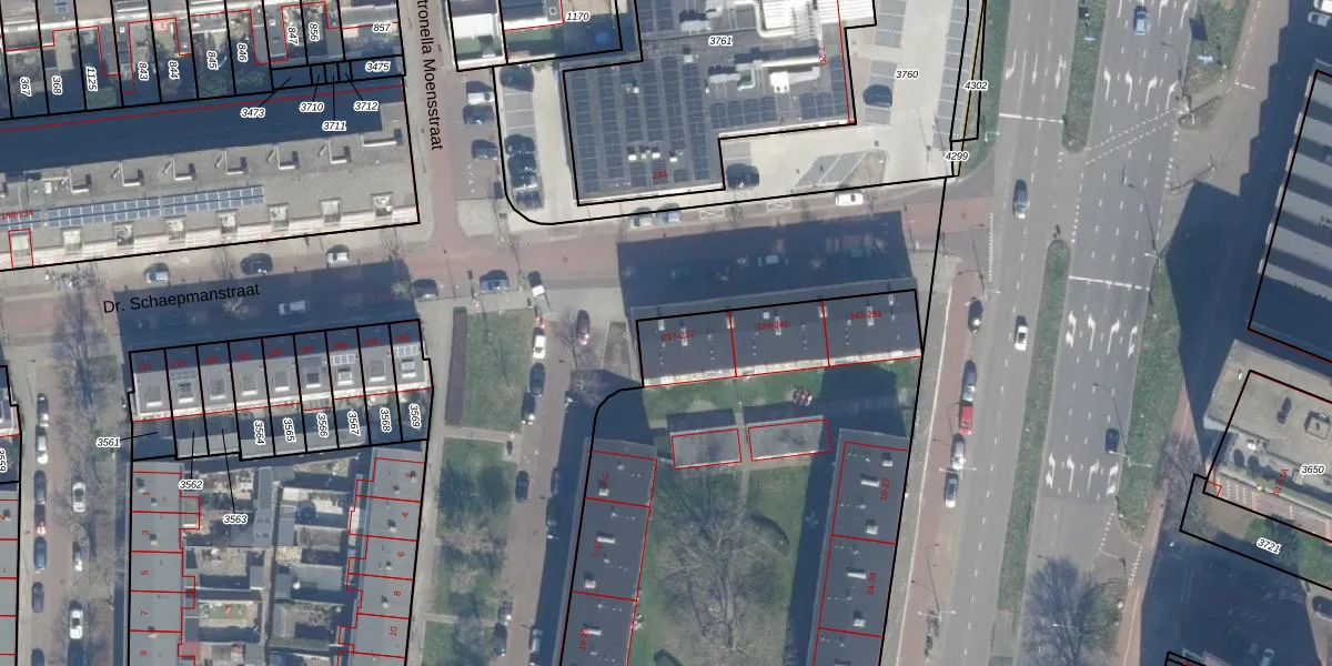 Dr. Schaepmanstraat 219 is gelegen op kadastraal perceel HLM02P1172. Deze kadastrale aanduiding is uniek en wordt gebruikt door het Kadaster om eigendomsrechten en andere zakelijke rechten vast te leggen. Het perceel maakt onderdeel uit van de kadastrale gemeente Haarlem.