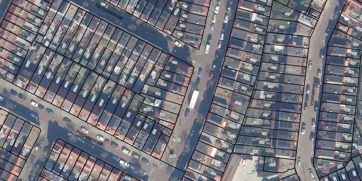 Het perceel waarop het adres ligt is HLM02-P-380. De afkorting 'HLM02' staat voor kadastrale gemeente Haarlem. Het perceel is kleiner dan gemiddeld in Haarlem. Het perceel is 91 m² groot, terwijl het gemiddelde ligt op 1125,79 m². De grootste perceeloppervlakte in de kadastrale gemeente is 46,4 ha. De kleinste oppervlakte bedraagt 0 m². Op het perceel bevinden zich geen andere adressen. De huidige grenzen van het perceel zijn digitaal in de Basisregistratie Kadaster (BRK) geregistreerd op 28-11-1997.