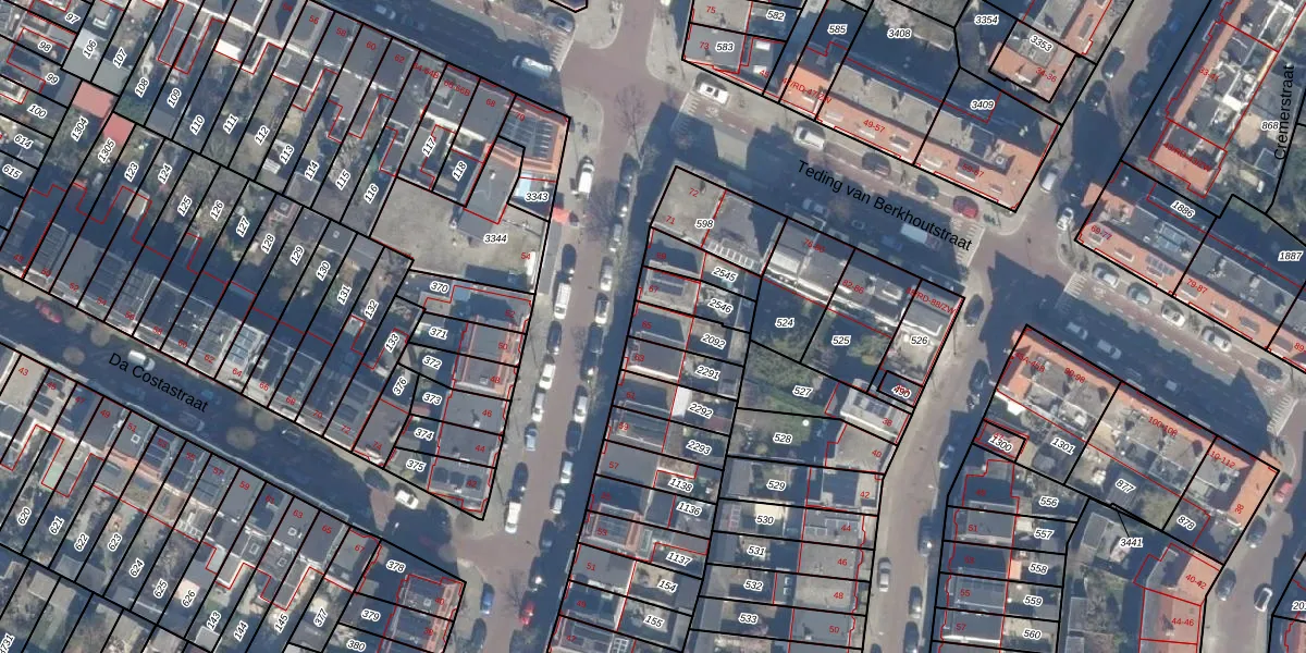 Het perceel waarop het adres ligt is HLM02-P-2092. De afkorting 'HLM02' staat voor kadastrale gemeente Haarlem. Het perceel is kleiner dan gemiddeld in Haarlem. Het perceel is 99 m² groot, terwijl het gemiddelde ligt op 1125,79 m². De grootste perceeloppervlakte in de kadastrale gemeente is 46,4 ha. De kleinste oppervlakte bedraagt 0 m². Er zijn geen andere adressen aanwezig op het perceel. De laatste wijziging in het de Basisregistratie Kadaster (BRK) was op 18-09-2001.