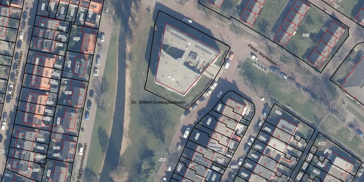 Dr. Willem Dreesplantsoen 11 is gelegen op kadastraal perceel HLM02T4156. Deze kadastrale aanduiding is uniek en wordt gebruikt door het Kadaster om eigendomsrechten en andere zakelijke rechten vast te leggen. Het perceel maakt onderdeel uit van de kadastrale gemeente Haarlem.