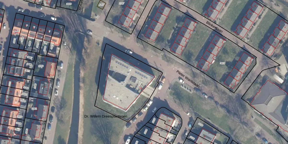 Dr. Willem Dreesplantsoen 12 is gelegen op kadastraal perceel HLM02T4156. Deze kadastrale aanduiding is uniek en wordt gebruikt door het Kadaster om eigendomsrechten en andere zakelijke rechten vast te leggen. Het perceel maakt onderdeel uit van de kadastrale gemeente Haarlem.