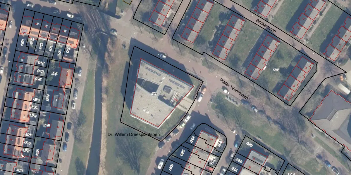 Dr. Willem Dreesplantsoen 14 is gelegen op kadastraal perceel HLM02T4156. Deze kadastrale aanduiding is uniek en wordt gebruikt door het Kadaster om eigendomsrechten en andere zakelijke rechten vast te leggen. Het perceel maakt onderdeel uit van de kadastrale gemeente Haarlem.