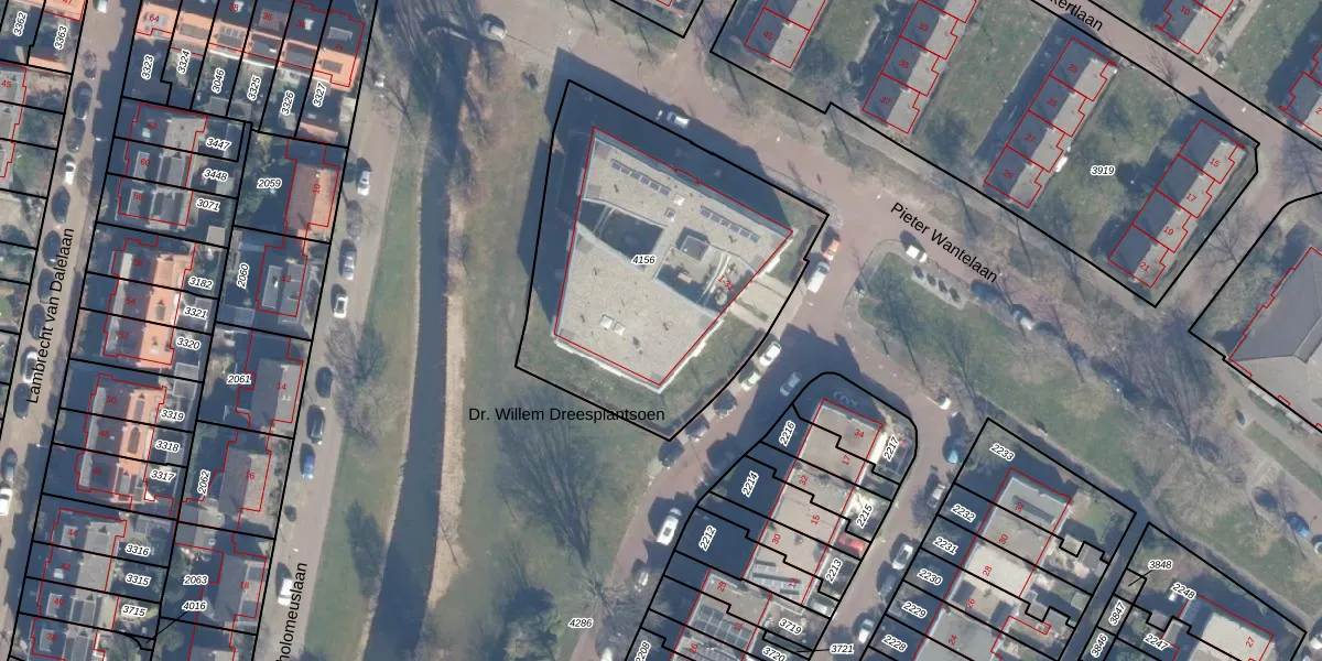 Dr. Willem Dreesplantsoen 20 is gelegen op kadastraal perceel HLM02T4156. Deze kadastrale aanduiding is uniek en wordt gebruikt door het Kadaster om eigendomsrechten en andere zakelijke rechten vast te leggen. Het perceel maakt onderdeel uit van de kadastrale gemeente Haarlem.
